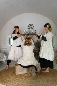 - le bas de la tunique est légèrement boule réhausseur d’un bandeau écru brodé de fleurs
