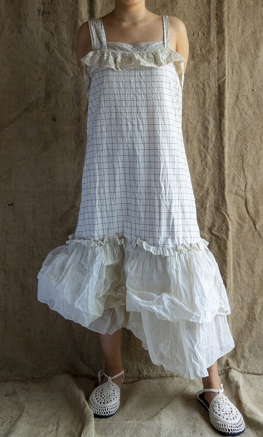 Deux rubans de dentelle de coton sur le devant et deux à l’arrière.