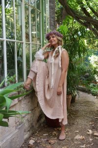 Matière : mélange 50% lin & 50% coton, avec sous-robe en organza de coton