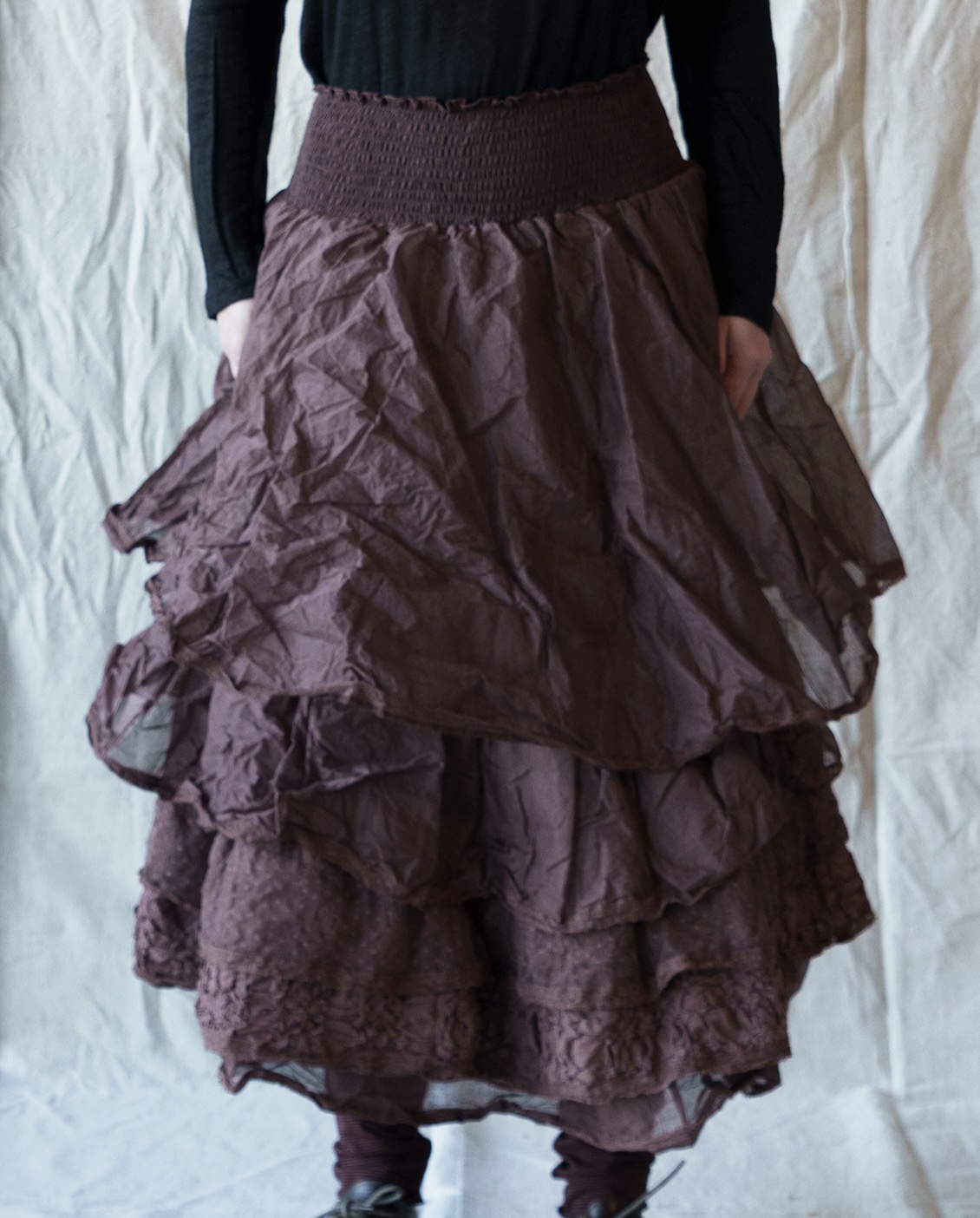 This skirt has a beautiful volume. Jouant avec la  matière et ses 4 volants c’est une pièce qui ne laisse pas indifférent et qui clame au grand jour votre amour pour le mélange de styles et d’époques.