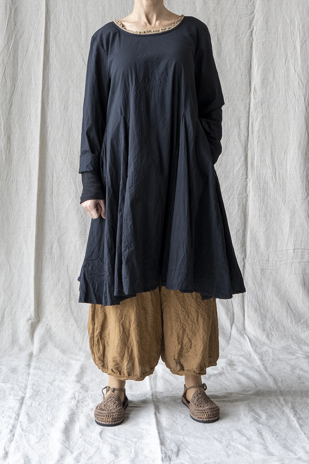 Un pan amovible accroché avec des gros boutons recouverts ton sur ton.